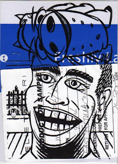 On September 12 2006 I started a project titled "A Face A Day". I've drawn a "face" inspired by someone/something every day. These drawings are created on a small piece of linoleum and then cut out and printed. As I print the edition, I usually print a few extra onto postcard weight pieces. In keeping with this project, I'd like to exchange mailart/postcards with your interpretation of a portrait. End date May 22 2008 David Berube 462 West 52nd St Apt 3N NY, NY 10019 USA